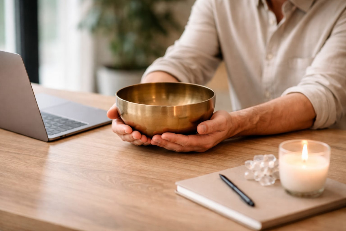 Klangschalen, Stimmgabeln und fließende Bewegungen wirken auf Körper und Seele, öffnen Räume der Entspannung und führen dich in eine tiefe Verbindung mit dir selbst.